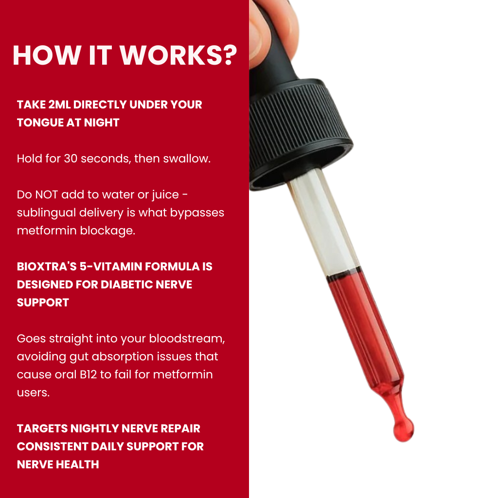 🖤 Sublingual Liquid Delivery — Bypasses the gut entirely. Critical for metformin users whose B12 absorption is blocked. Goes directly into bloodstream through tissue under tongue.