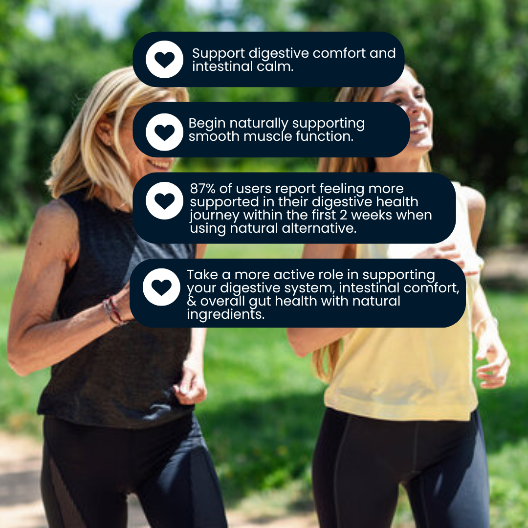 It works differently — naturally relaxing intestinal muscles instead of suppressing the nervous system. No brain fog, no side effects.